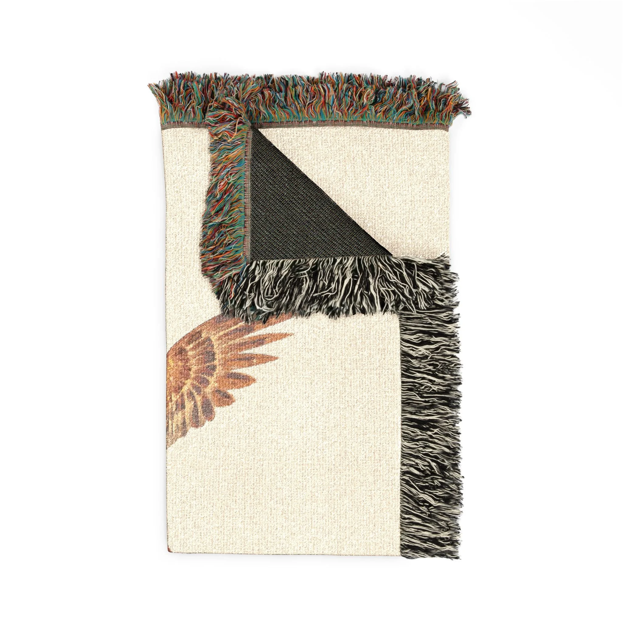 This woven blanket brings a warm, homey presence to living rooms, cabins, and travel-ready trunks. The woven threads form a textured field where a bold eagle motif rises — its wings stretching across colorful fringed edges that catch the eye. Pick the Artwork variant for crisp, graphic color blocks that keep the eagle’s silhouette sharp, or the Photo variant when you want subtler tonal transitions and photographic detail. Light but substantial, the 100% cotton weave drapes easily over sofas or laps, and the three available sizes mean you can choose a throw for evening reads, a larger wrap for shared movie nights, or a roomy cover for outdoor concerts. The tactile fringe and visible woven pattern add handcrafted charm; the finished piece reads like a practical keepsake that layers into everyday routines and special moments alike.