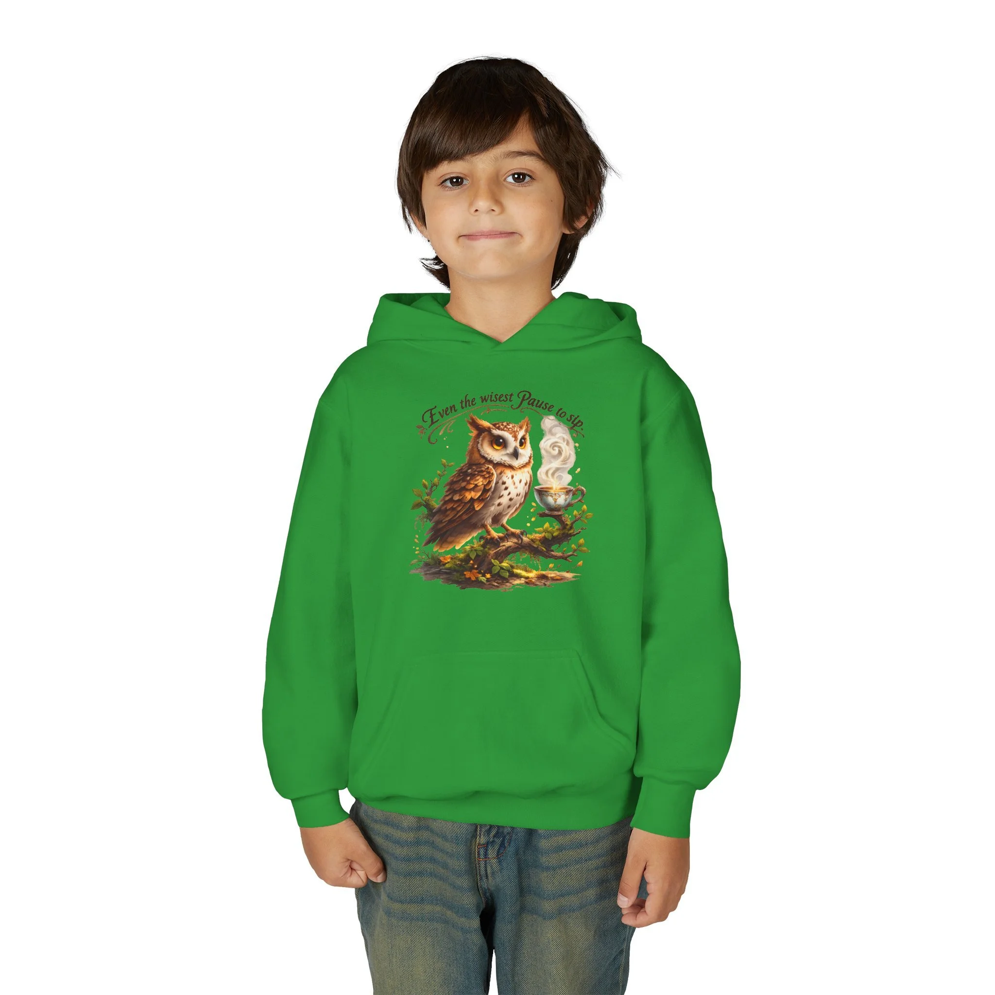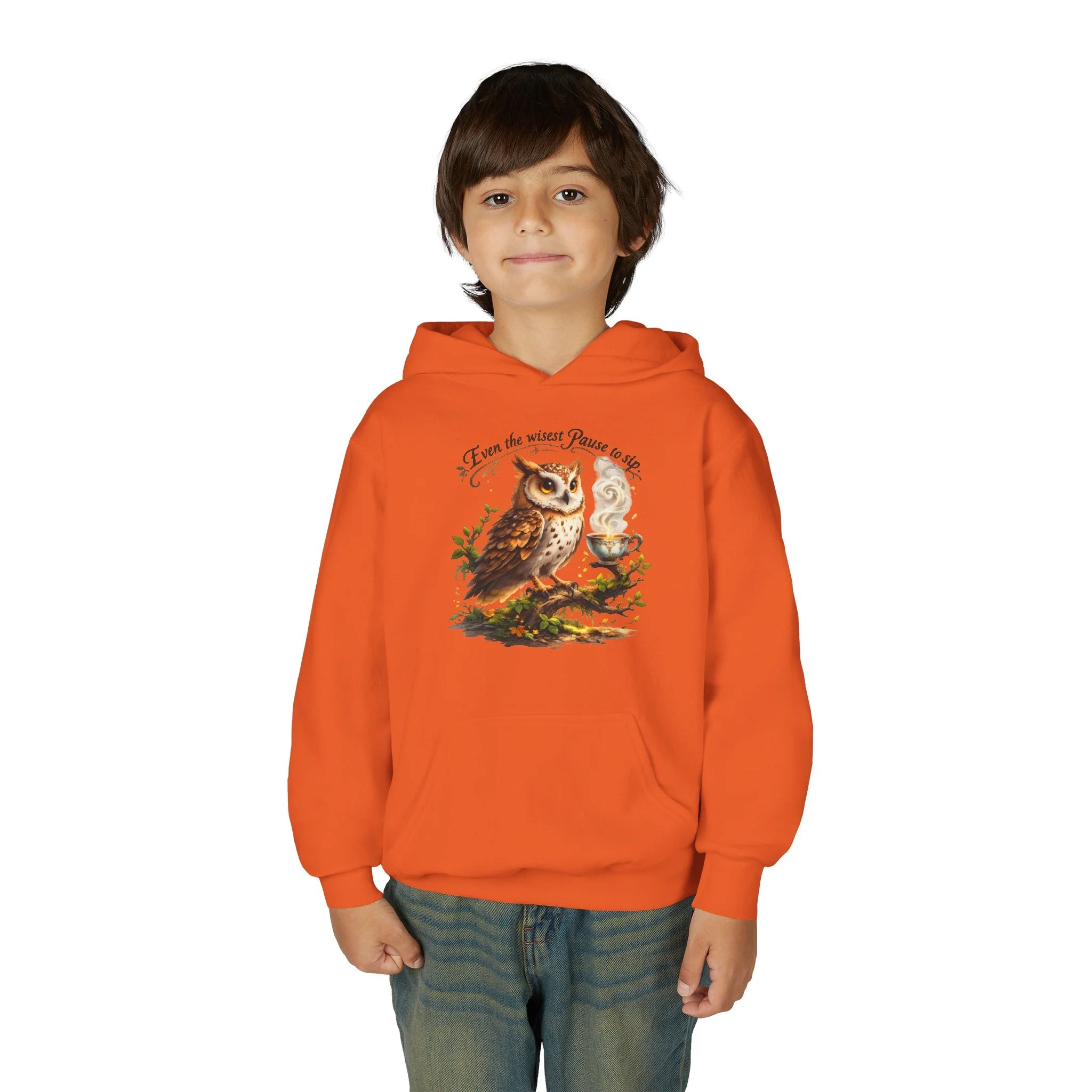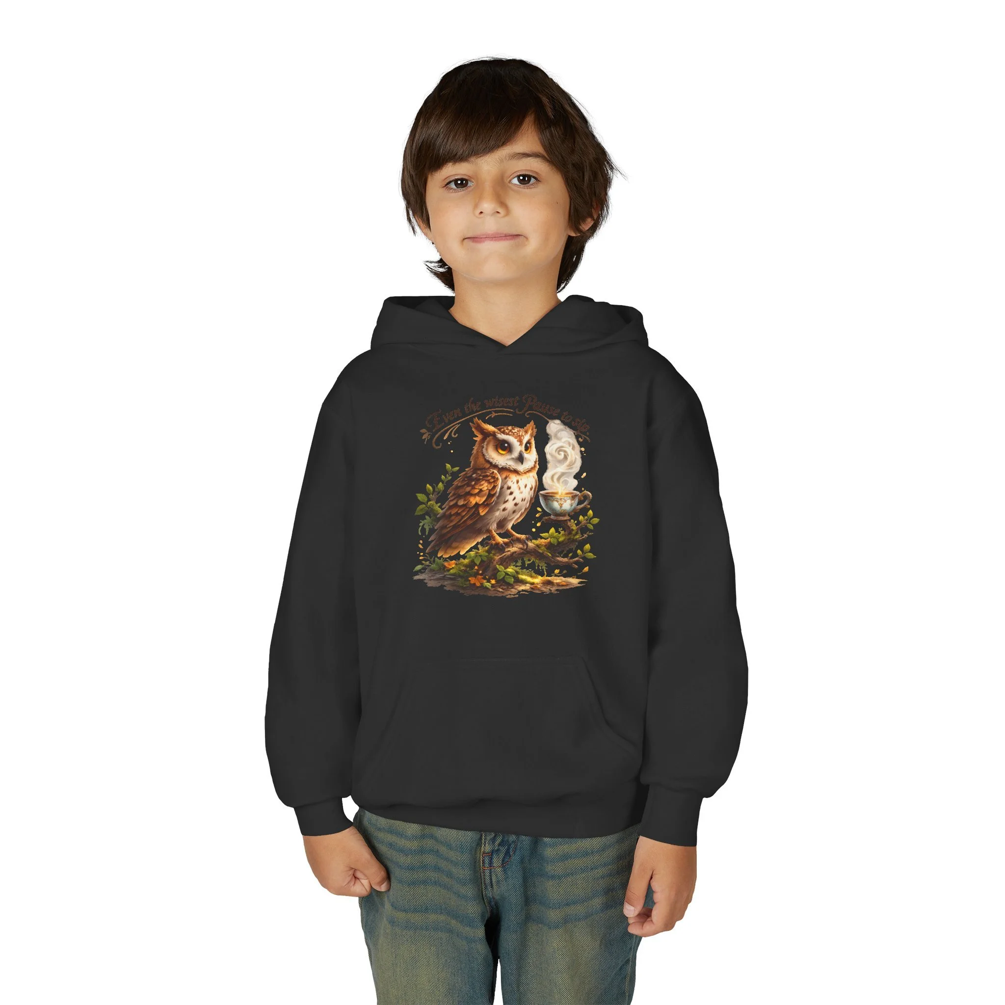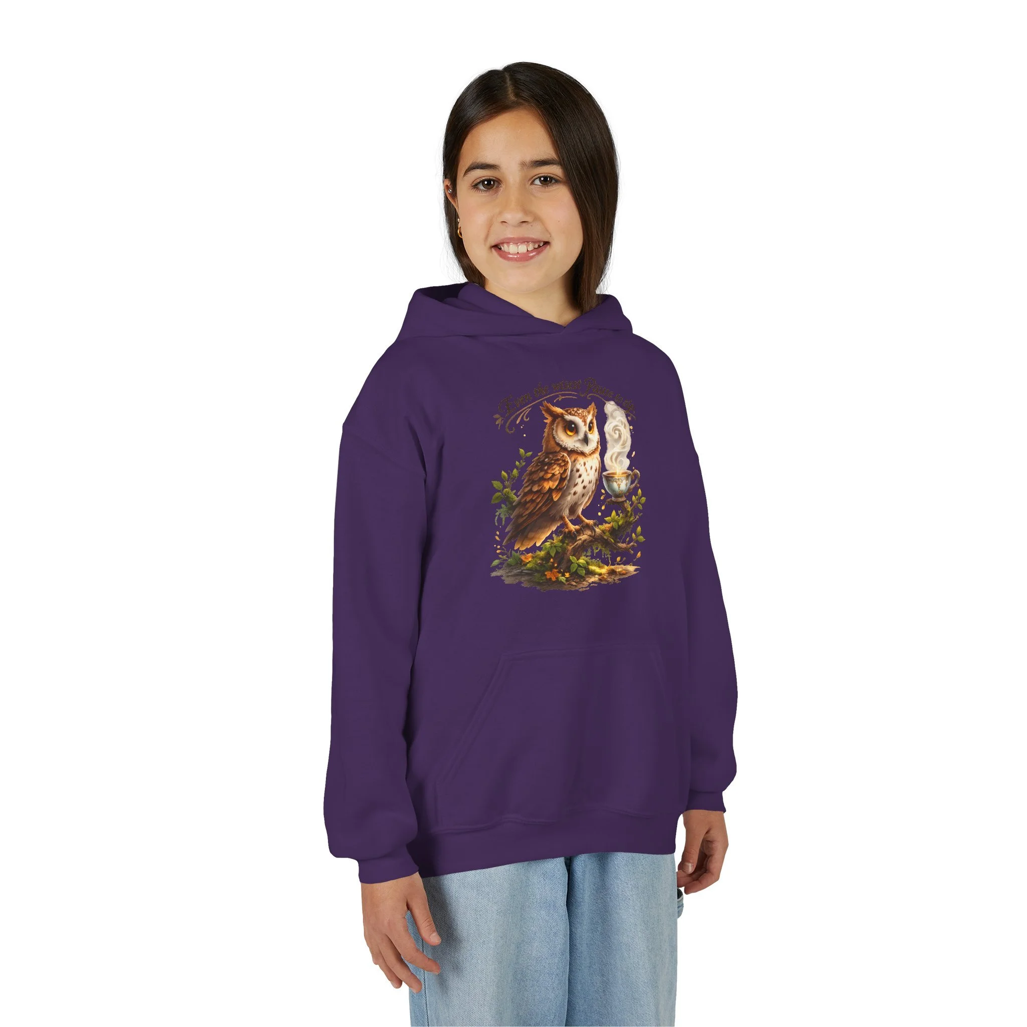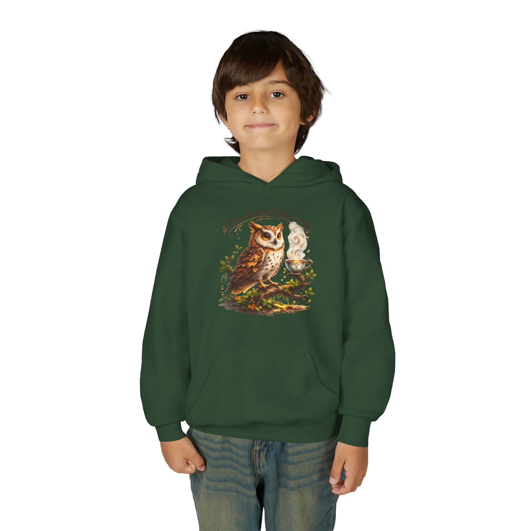 A cozy youth hoodie that brings woodland calm to chilly days. Soft yet sturdy midweight fabric holds detailed prints and gentle embroidery without sacrificing comfort. The kangaroo pouch keeps small hands warm and holds treasures from backyard adventures. Thoughtfully constructed with twill necktape and a sewn-in label for a smooth, itch-free fit. Subtle wrist prints and quality print methods keep the artwork vivid through play and washes. Ready-made for young nature lovers who want a wearable piece of the forest in their everyday wardrobe.